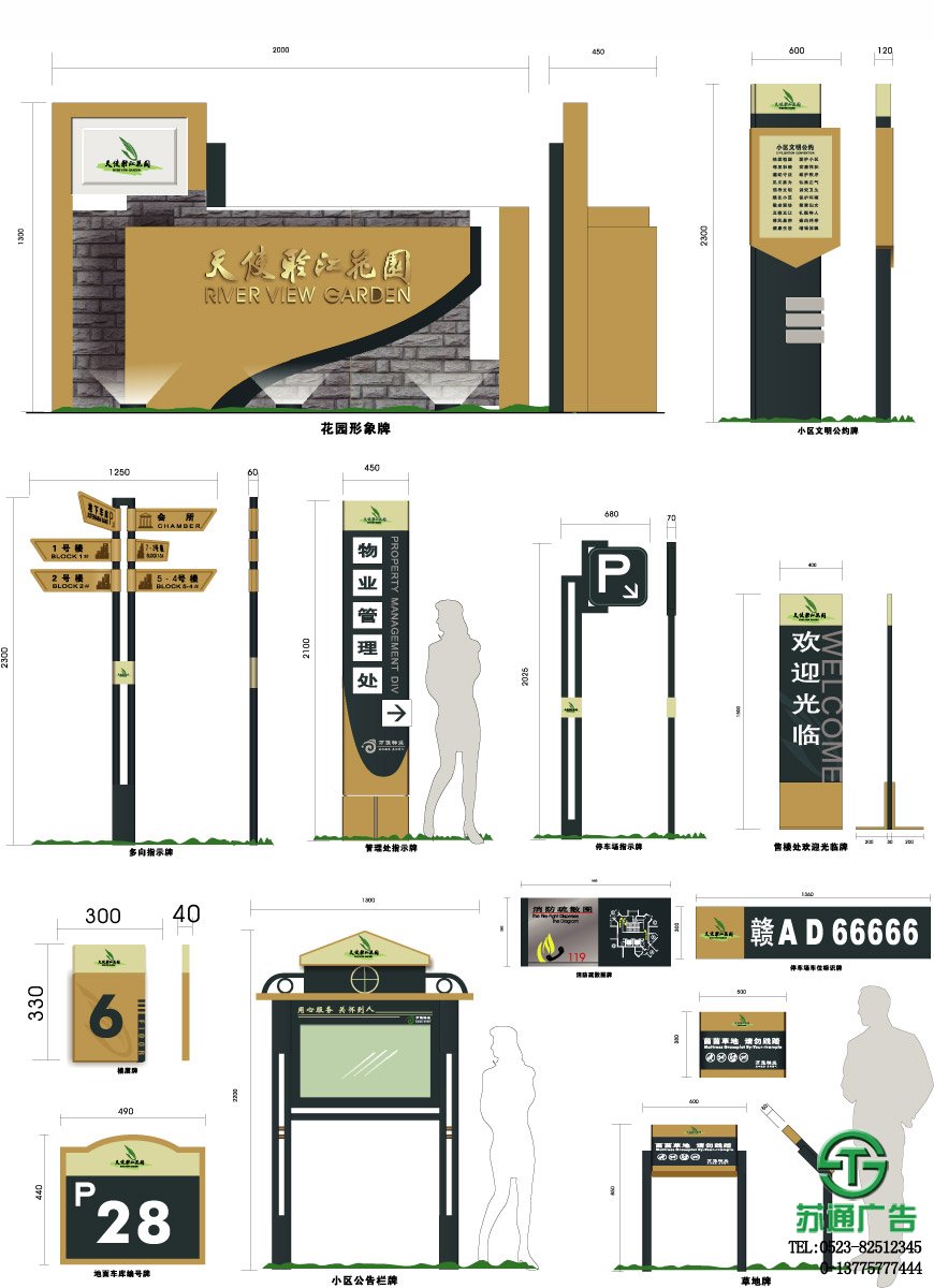 三級標(biāo)識標(biāo)牌:社區(qū)內(nèi)部的物業(yè)管理、社區(qū)服務(wù)點(diǎn)、社區(qū)公園、停車場、VIP會所、休閑公園、售樓處與樣板房等處的外部環(huán)境標(biāo)識標(biāo)牌;